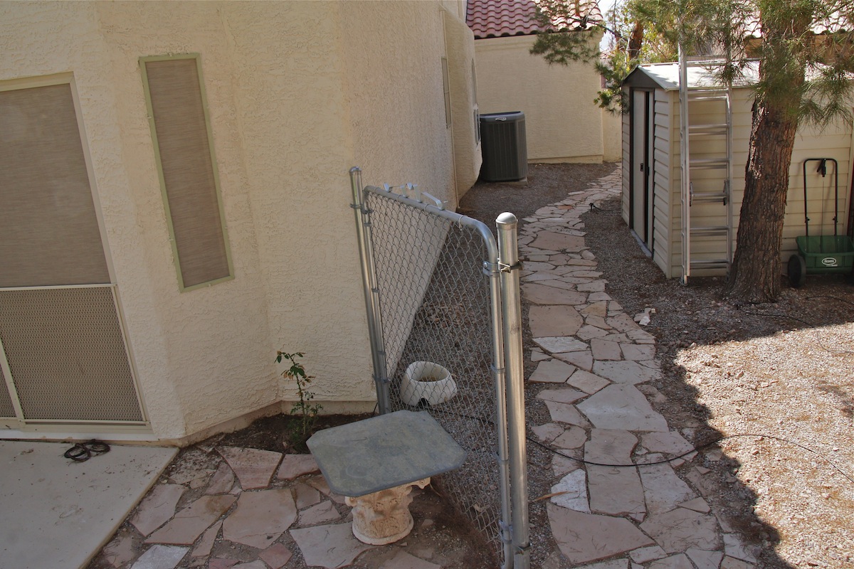 | The view from the back wall. There's a large chain-link dog run along the north side wall. |